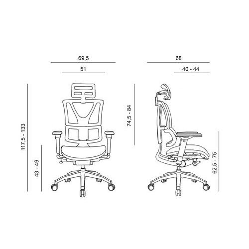 - Kancelárske kreslo Korina so sieťkou na sedadle, operadle a opierke hlavy.