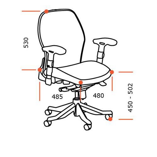Kancelárske stoličky sú opatrené anatomicky tvarovaným sedadlom a sieťovaným operadlom. Synchrónny mechanizmus je možné zafixovať v akejkoľvek polohe. Možnosť nastavenia sily protiváhy, výšky sedadla a výšky podrúčok. Stolička je opatrená univerzálnymi kolieskami na tvrdú podlahu i koberec. Možnosť výberu zo siedmich farebných vyhotovení. Nosnosť tejto otočnej stoličky je 120 kg.