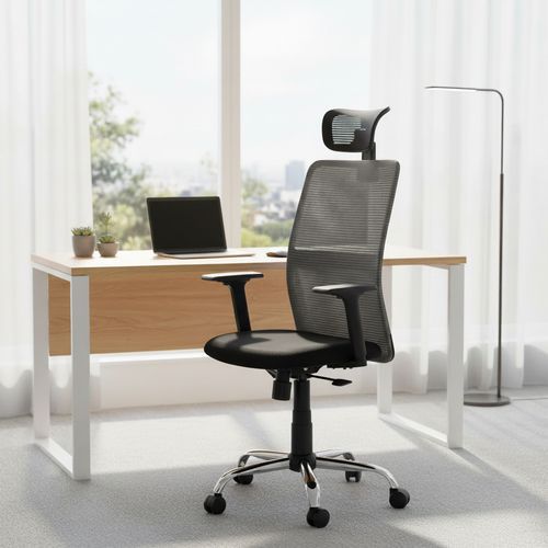 Kancelárske stoličky sú opatrené sieťovaným operadlom a pohodlným textilným sedákom s hojdacou mechanikou a kovovým krížom.
