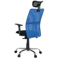 Kancelárske stoličky sú opatrené sieťovaným operadlom a pohodlným textilným sedákom s hojdacou mechanikou a kovovým krížom.