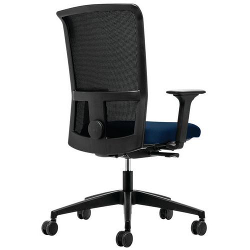 Otočná kancelárska stolička s vysokým polstrovaným operadlom, ktoré je možné aretovať v prednej aj zadnej polohe. Synchrónny mechanizmus a výškovo nastaviteľná bedrová opierka. 4D nastaviteľné podrúčky v tvare T. Tvrdé kolieska s brzdou s priemerom 65 mm. Nastaviteľná výška sedadla v rozmedzí od 415 do 520 mm.