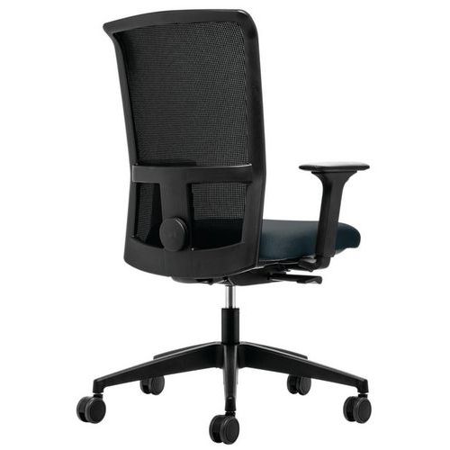 Otočná kancelárska stolička s vysokým polstrovaným operadlom, ktoré je možné aretovať v prednej aj zadnej polohe. Synchrónny mechanizmus a výškovo nastaviteľná bedrová opierka. 4D nastaviteľné podrúčky v tvare T. Tvrdé kolieska s brzdou s priemerom 65 mm. Nastaviteľná výška sedadla v rozmedzí od 415 do 520 mm.