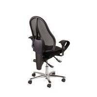 Stoličky majú výškovo nastaviteľnú ergonomickú opierku chrbta, potiahnutú vzdušnou sieťovinou a integrovanú oporu bedrových stavcov.