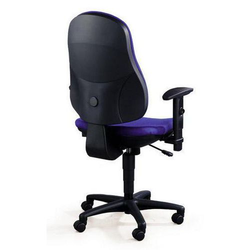 Čalúnené kancelárske kreslo s tvarovaným operadlom a integrovanou oporou bedrovej chrbtice s možnosťou nastavenia výšky pomocou západkového mechanizmu. Výhodu predstavuje pohodlné, ergonomicky tvarované sedadlo a synchrónny chrbtový mechanizmus umožňujúci plynulé nastavenie vzájomnej polohy sedadla a operadla vrátane výšky sedadla. Možnosť nastaviť protitlak operadla podľa hmotnosti sediacej osoby. Otočné stoličky sú opatrené dvojitými bezpečnostnými kolieskami na mäkké povrchy brzdenými v závislosti od zaťaženia. K dispozícii v troch farebných variantoch. Nosnosť tejto otočnej stoličky je 120 kg.