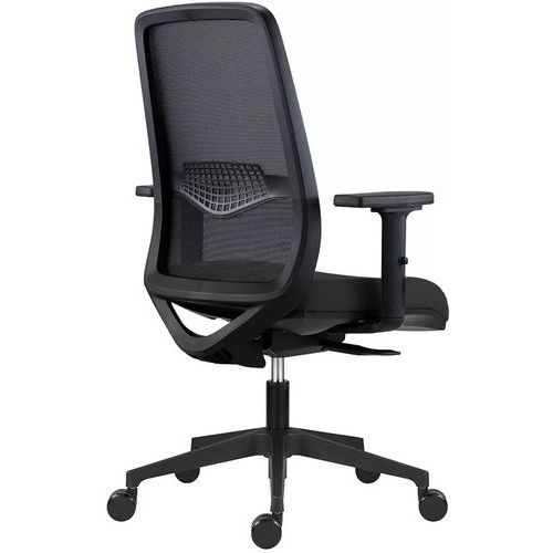 - Kancelárske stoličky Tulio s čiernou sieťovinou na operadle obohatené o nastaviteľnú bedrovú výstuhu.
