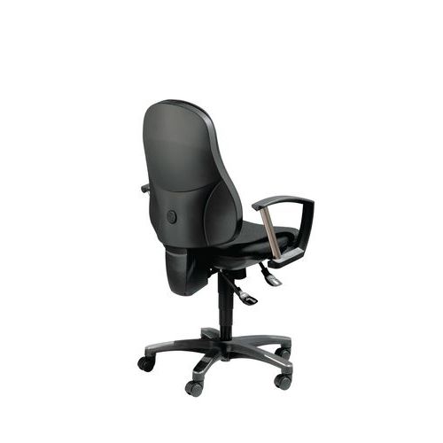 Komfortné kancelárske stoličky s robustným synchrónnym mechanizmom, ktorý prináša možnosť nastavenia podľa vlastnej hmotnosti používateľa. Pohodlné sedenie zaručuje tvarované operadlo s integrovanou opierkou bedrových stavcov. Stabilitu sedenia kancelárskeho kresla zaručuje kríž s chrómovými prvkami a samobrzdiace kolieska.
