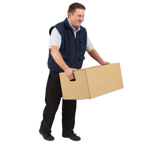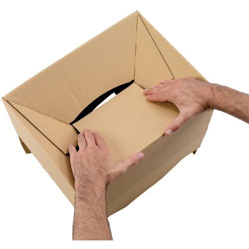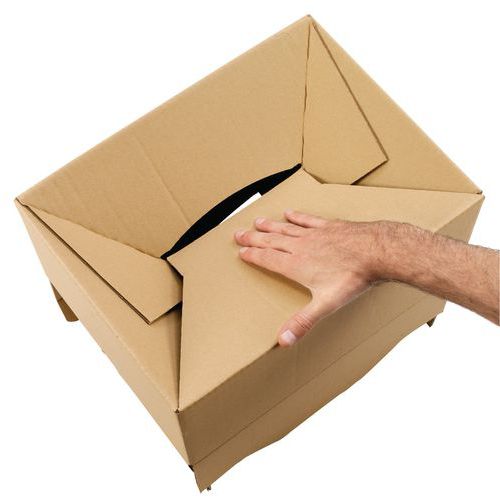 Predtvarované telo pre veľmi rýchle zloženie krabice. S dvojitou hrúbkou základne. Vybavená bočnými úchytmi. Pripravte si krabice počas chvíľky Druh lepenky : Trojvrstvová