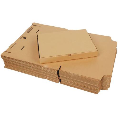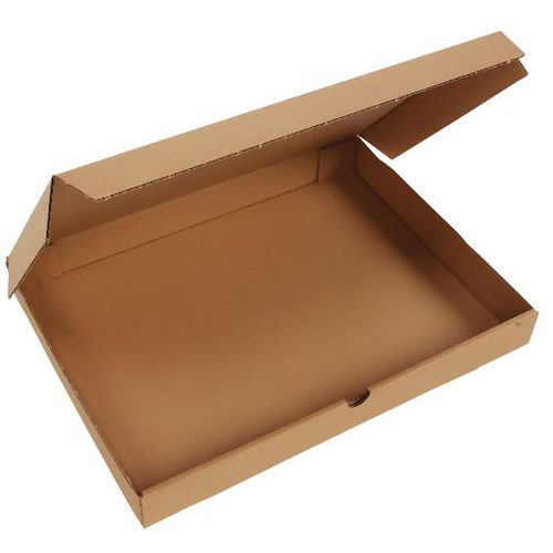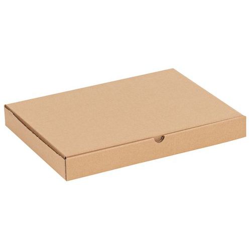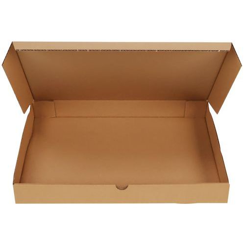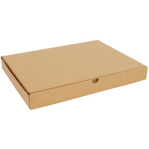 Pevné prepravné krabice z kraftového kartónu farby Havana. Konštrukcia špeciálne prispôsobená plochým formátom. Druh lepenky : Trojvrstvová