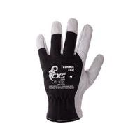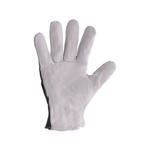 Rukavice s čiernym elastickým úpletom na chrbte. Odporúčané použitie: do suchého a mierne vlhkého prostredia. Odvetvia: stavebníctvo, pneuservis, logistika a doprava. Veľkosti: 8, 9, 10 Piktogramy: 9, 10 Predpisy: EN 420 Zloženie materiálu: dlaň - kozia koža, chrbát - bavlnený úplet Norma EN 420 : áno