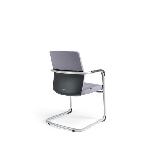 - Konferenčné látkové stoličky s kovovou lyžinovou konštrukciou a integrovanými lakťovými opierkami.