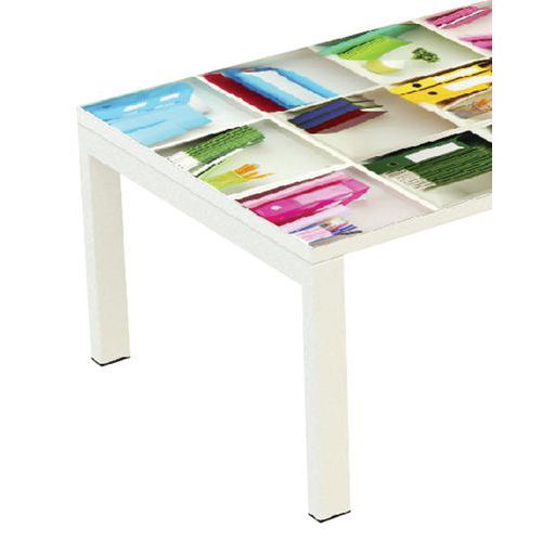- Obdĺžnikový konferenčný stolík vo farebnom dizajne vhodný do kancelárií, vstupných hál a i.