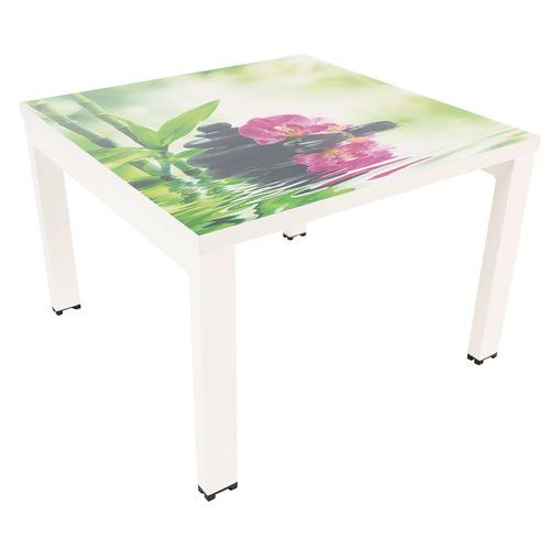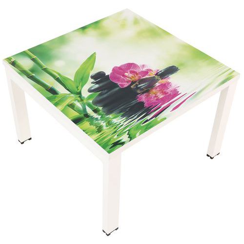 - Štvorcový konferenčný stolík vo farebnom dizajne vhodný do kancelárií, vstupných hál a i.