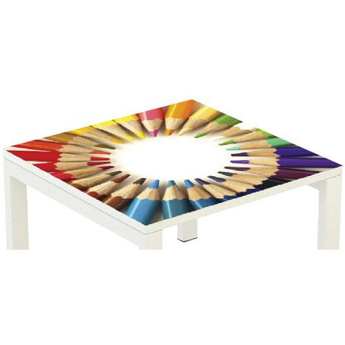 - Štvorcový konferenčný stolík vo farebnom dizajne vhodný do kancelárií, vstupných hál a i.