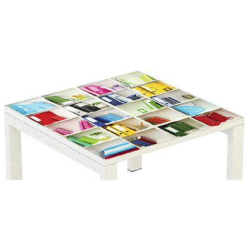 - Štvorcový konferenčný stolík vo farebnom dizajne vhodný do kancelárií, vstupných hál a i.