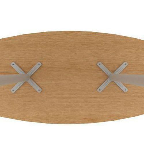 - Zaoblené konferenčné stoly s kovovými nohami.