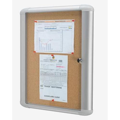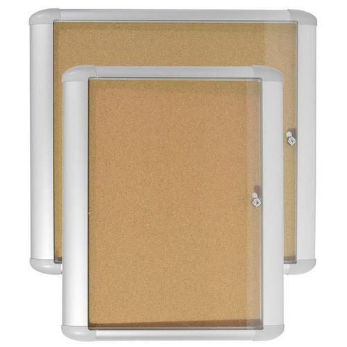 - Korkové vitríny so zaoblenými hranami a rámom vyrobeným z eloxovaného hliníka vhodné do interiéru.