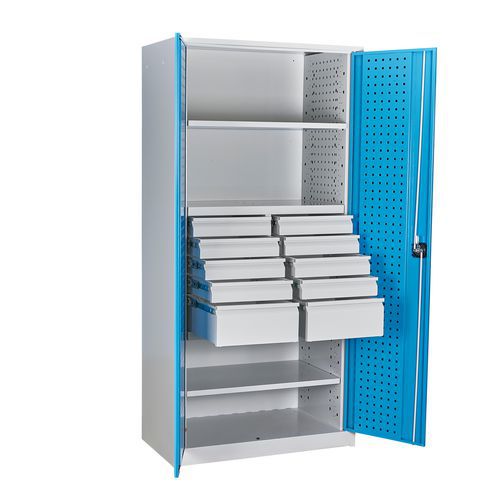 | Názov produktu | Kovová dielenská skriňa, 195 x 95 x 50 cm, 2 police, 10 zásuviek |