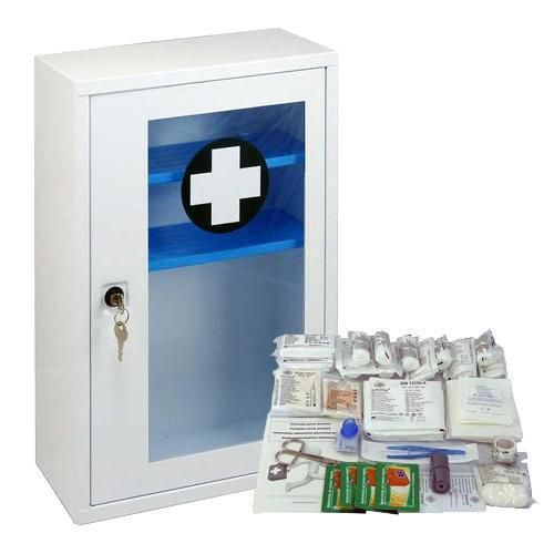 | Názov produktu | Kovová nástenná lekárnička s transparentnými dvierkami, uzamykateľná, 46 x 30 x 14 cm, s náplňou KANCELÁRIA |