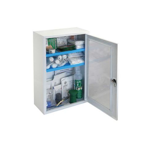 | Názov produktu | Kovová nástenná lekárnička s transparentnými dvierkami, uzamykateľná, 46 x 30 x 14 cm, s náplňou SKLAD |