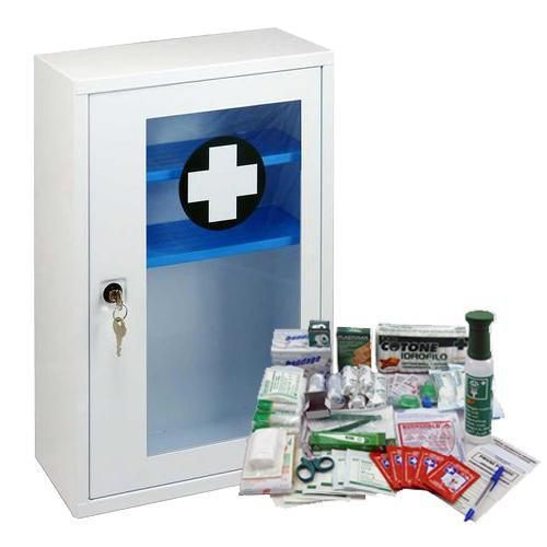 | Názov produktu | Kovová nástenná lekárnička s transparentnými dvierkami, uzamykateľná, 46 x 30 x 14 cm, s náplňou VÝROBA |