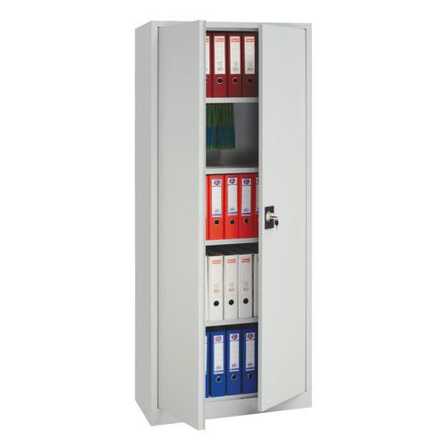 - Montovaná skriňa so stabilnou konštrukciou vhodná na uloženie 75 šanónov. Vystužené krídlové dvere je možné otvárať až do 180°. Zamykanie pákovým rázvorovým mechanizmom Ronis. Police majú upravený lem na podvesenie závesných obalov formátu A4.