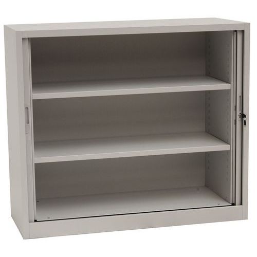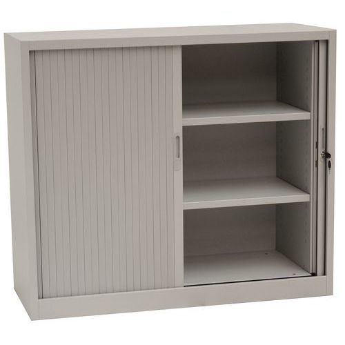 - Skriňa s dvoma nastaviteľnými policami a plastovými roletami, ktoré je možné plne zasunúť do strán. Možnosť uzamknutia cylindrickým zámkom.