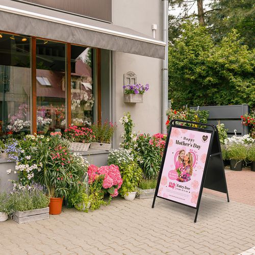 - A‑Board Elegant Steel umožňuje rýchlu aktualizáciu obsahu vďaka magnetickému uchyteniu fólie.