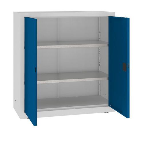 Kovová dielenská skriňa, 104 x 100 x 43,5 cm, 2 police, šedá/tm. modrá