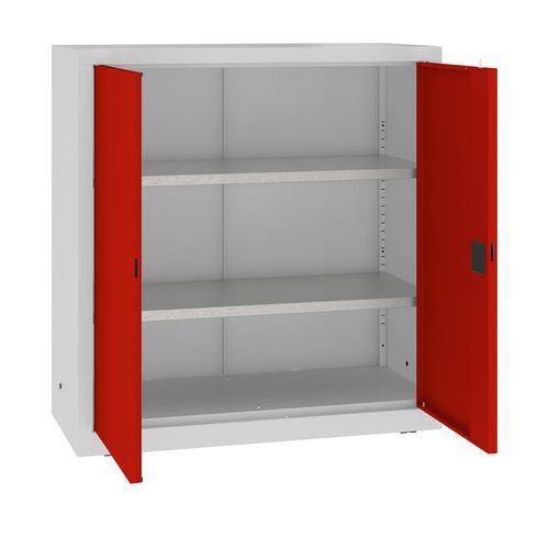 Kovová dielenská skriňa, 104 x 100 x 43,5 cm, 2 police, šedá/červená