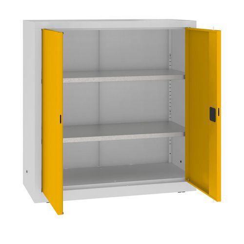 Kovová dielenská skriňa, 104 x 100 x 43,5 cm, 2 police, šedá/žltá