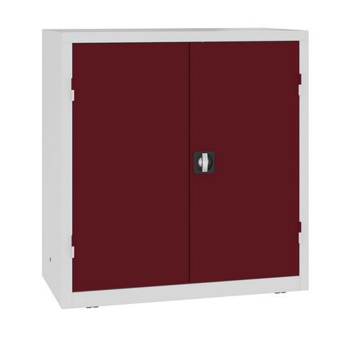 - Nízke kovové skrine s dvoma policami a zásuvkami vhodné na profesionálne použitie vo vnútorných suchých a vetraných priestoroch.