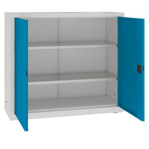 Kovová dielenská skriňa, 104 x 120 x 43,5 cm, 2 police, šedá/zv. modrá
