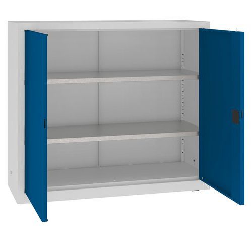 Kovová dielenská skriňa, 104 x 120 x 43,5 cm, 2 police, šedá/tm. modrá
