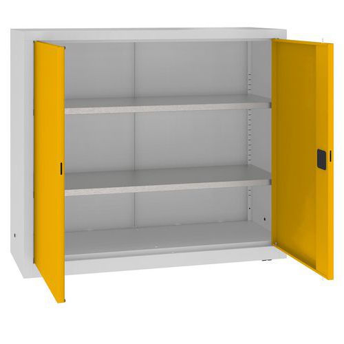 Kovová dielenská skriňa, 104 x 120 x 43,5 cm, 2 police, šedá/žltá