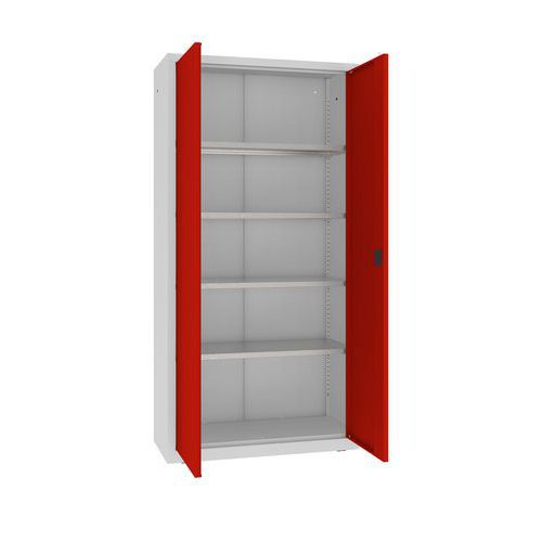 Kovová dielenská skriňa, 199 x 100 x 43,5 cm, 4 police, šedá/červená