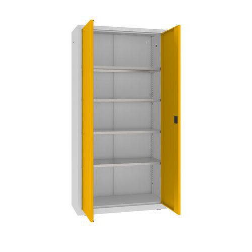 Kovová dielenská skriňa, 199 x 100 x 43,5 cm, 4 police, šedá/žltá