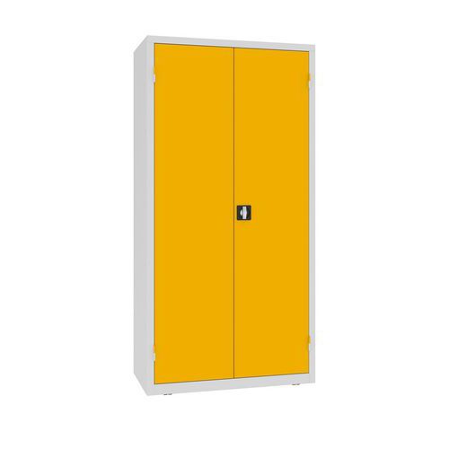 - Vysoké kovové skrine so štyrmi policami vhodné na profesionálne použitie vo vnútorných suchých a vetraných priestoroch.