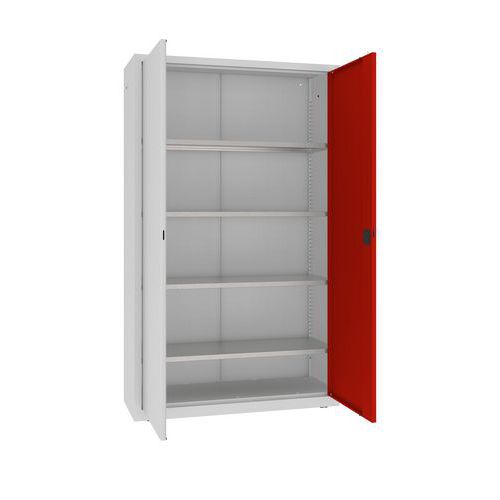 Kovová dielenská skriňa, 199 x 120 x 43,5 cm, 4 police, šedá/červená