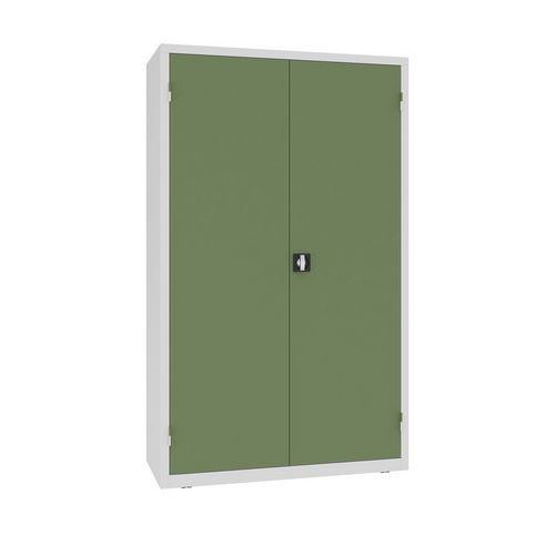 - Vysoké kovové skrine so štyrmi policami vhodné na profesionálne použitie vo vnútorných suchých a vetraných priestoroch.