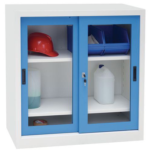 - Nízke kovové skrine so zasklenými posuvnými dverami sú vhodné do kancelárií, laboratórií, dielenských pracovísk aj zdravotných zariadení.