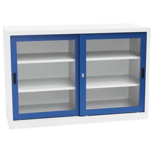 Nízke kovové skrine so zasklenými posuvnými dverami sú vhodné do kancelárií, laboratórií, dielenských pracovísk aj zdravotných zariadení. Skrinky s konštrukciou z oceľového plechu sú vybavené dvoma policami, ktorých výšku je možné podľa potreby nastaviť. Dvere sú uzamykateľné cylindrickou zámkou.