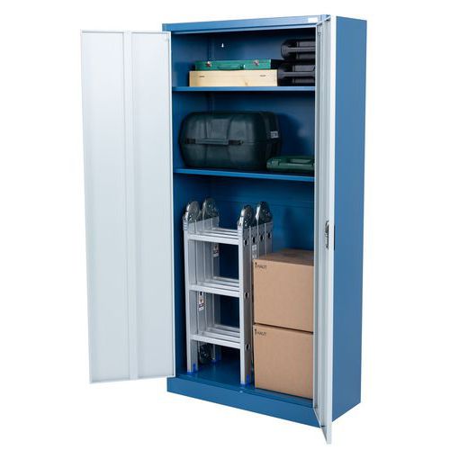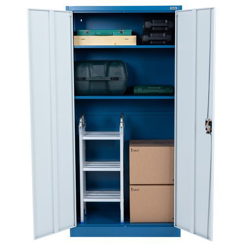 Kovová dielenská skriňa Manutan Expert, 185 x 90 x 40 cm, biela/modrá