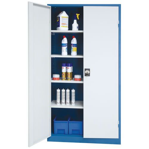 Zvárané skrine z oceľového plechu s otváraním dverí až do uhla 180 ° vhodné predovšetkým do dielní a skladov. Dvere sú prichytené na vonkajších pántoch.