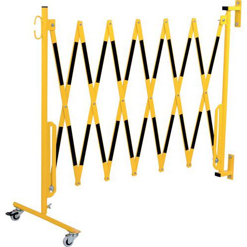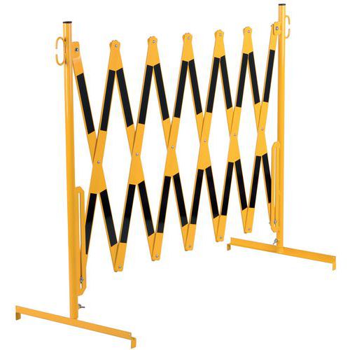 - Skladacie oceľové zábrany s nožičkami na 2 stranách na dočasné uzavretie nebezpečného priestoru.