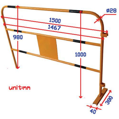 Kovová mobilná zábrana Manutan Expert, dĺžka 150 cm, čierna/žltá