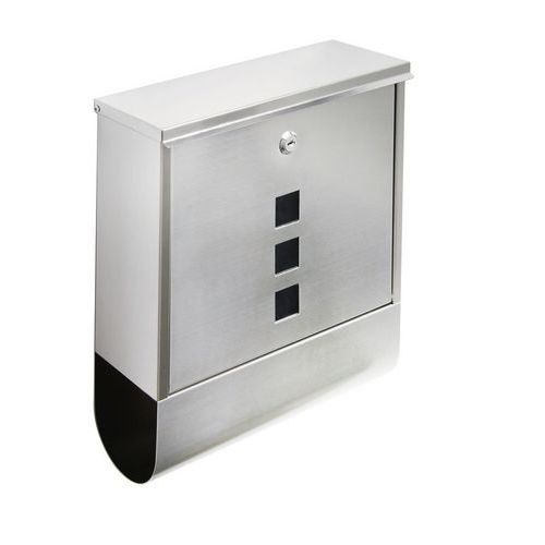 - Kovová poštová schránka s okienkami z matného plexiskla umožňujúca čiastočný priehľad do jej vnútra a tubusom na tlač.