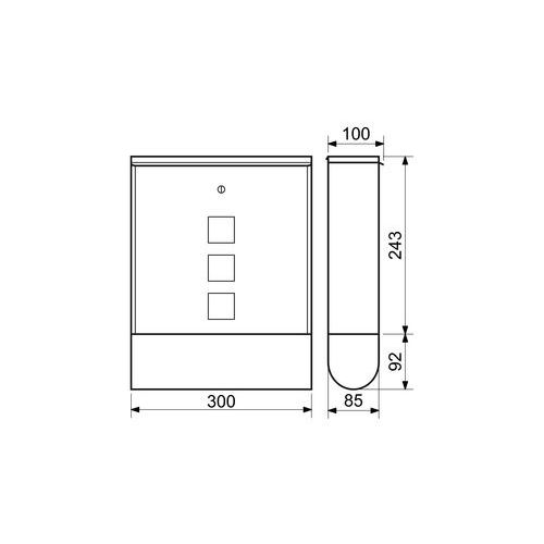 - Kovová poštová schránka s okienkami z matného plexiskla umožňujúca čiastočný priehľad do jej vnútra a tubusom na tlač.