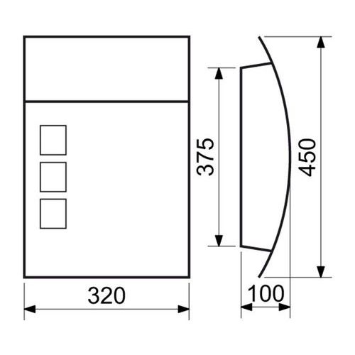 - Kovová poštová schránka s okienkami z matného plexiskla umožňujúca čiastočný priehľad do jej vnútra.