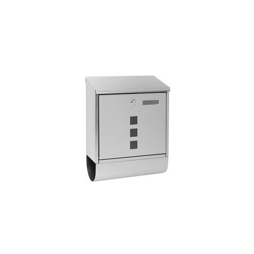 - Kovová poštová schránka s okienkami z číreho plexiskla umožňujúca čiastočný priehľad do jej vnútra a tubusom na tlač.