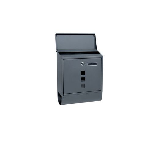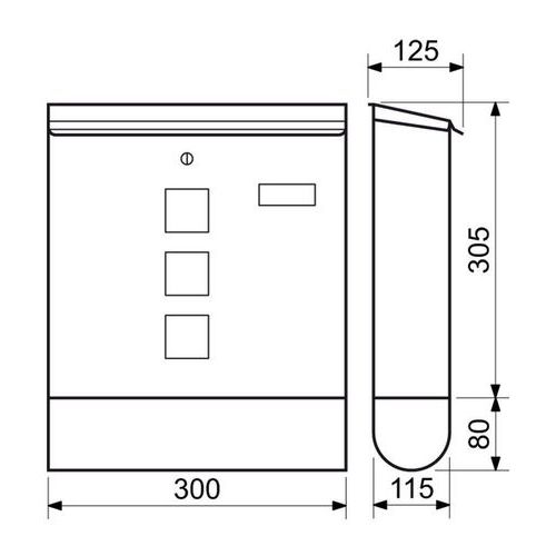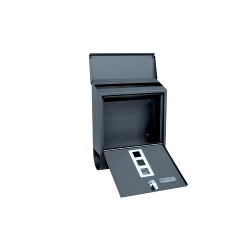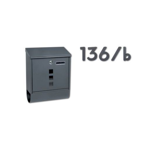 - Kovová poštová schránka s okienkami z číreho plexiskla umožňujúca čiastočný priehľad do jej vnútra a tubusom na tlač.
